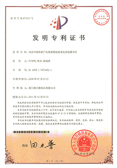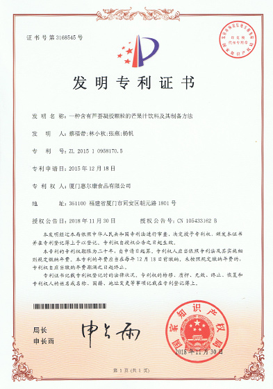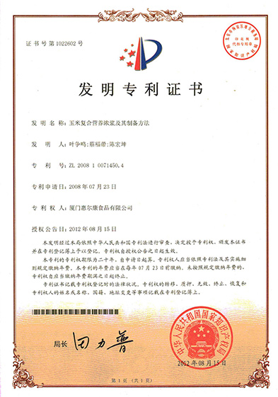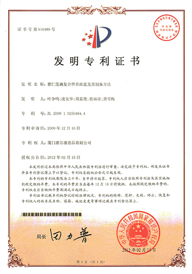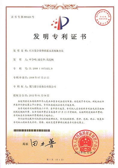 惠尔康技术中心成立于1998年,于2002年通过厦门市市级企业技术中心的认定,于2004年通过省级企业技术中心认定,是经国家农业部认定的杂粮加工方向的技术研发专业分中心。主持和参与制定国家标准1项,行业标准2项。